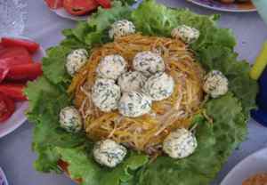 Салат «гніздо глухаря» — чудове рішення для будь-якого свята
