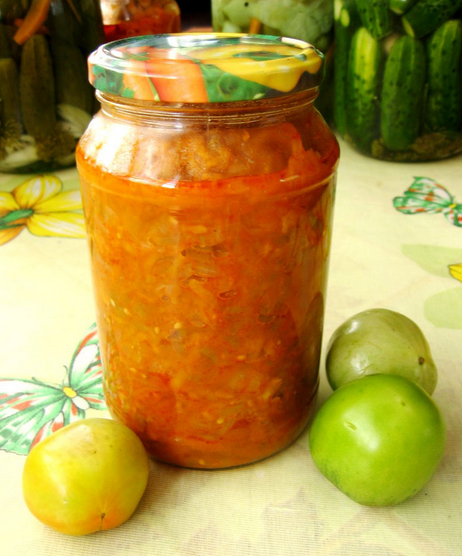 Рецепт салату із зелених помідорів на зиму