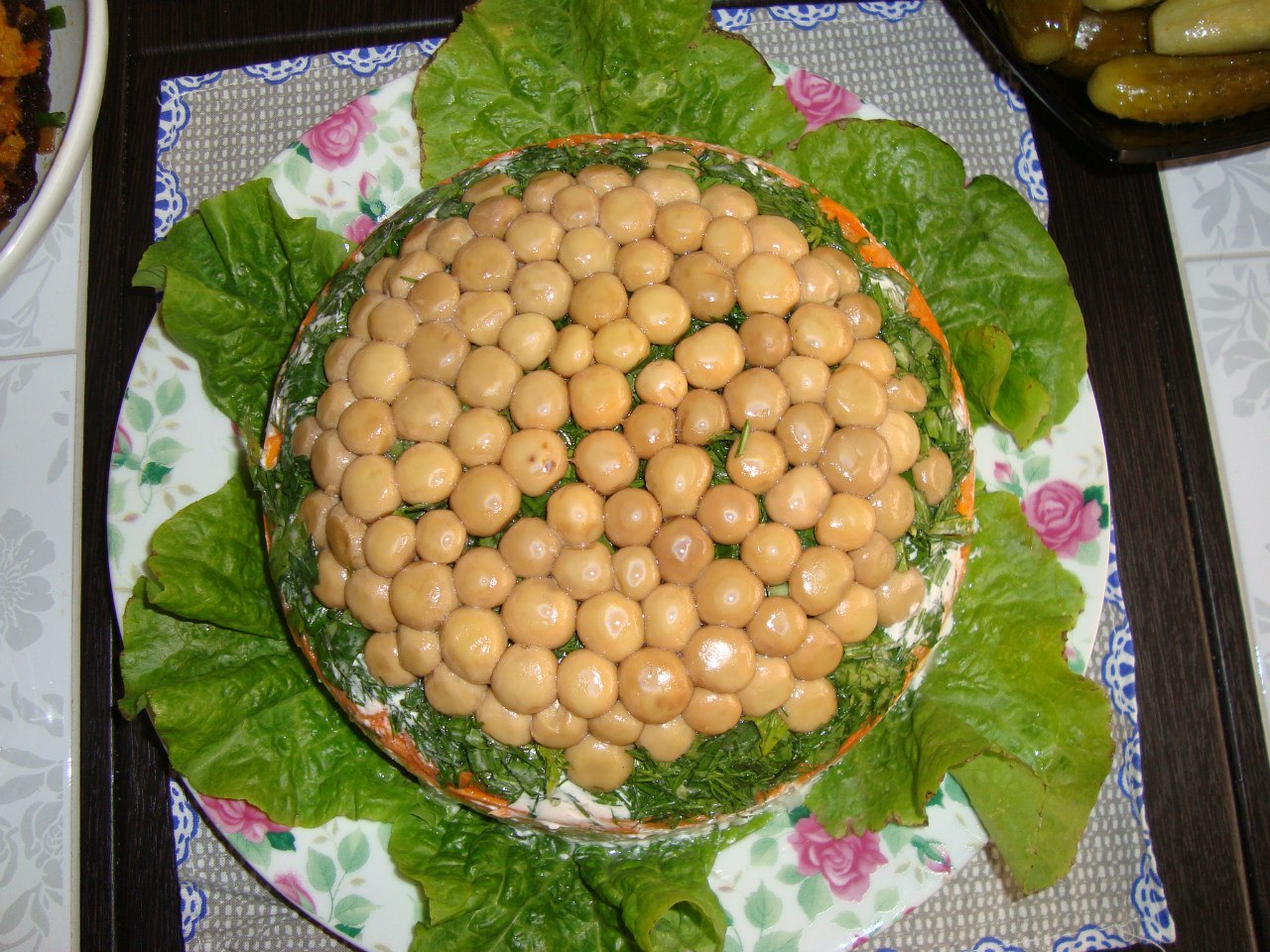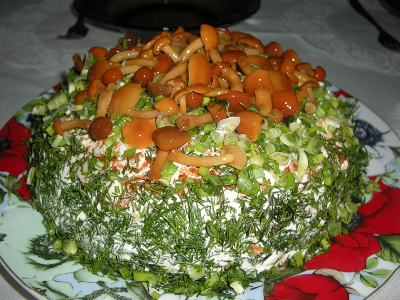 Класичний рецепт салату Лісова поляна з опеньками і куркою