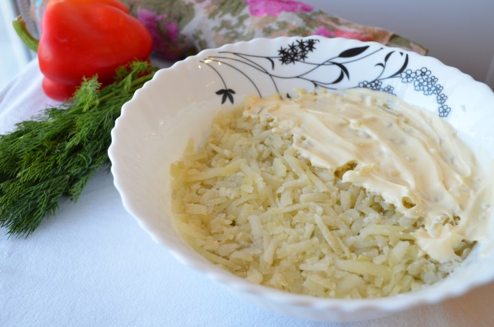 Готовому страві потрібно кілька годин вистоятися в холодильнику, потім можна перевернути сюрпризный салат на блюдо.