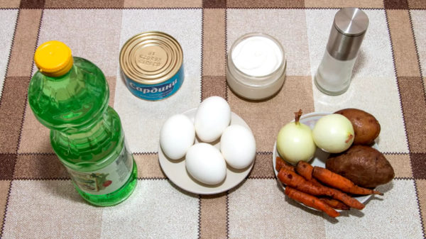 Рецепт салату Мімоза класичний передбачає придбання наступних продуктів: