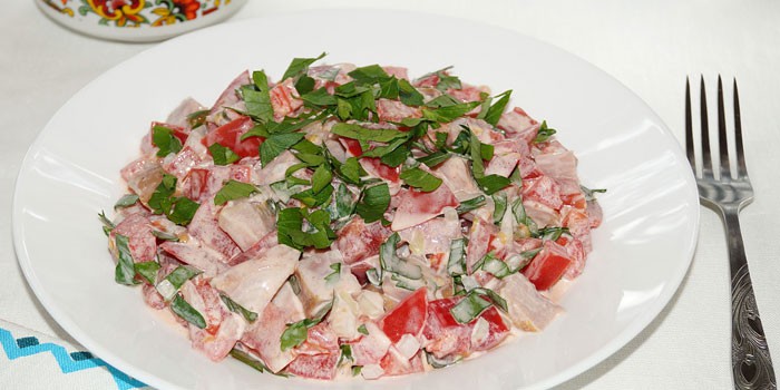 Завдяки багатому прикраси страви цей варіанти Нареченої виходить дійсно гідним представником будь-якого торжества. Ніжні, в міру пухнасті білки, надають закуски незвичайну легкість, а плавлений сирок ще трохи пікантності. Захотілося спробувати, чи не так? Тоді слідуючи рекомендаціям, приготуйте дієтичний салат з копченою куркою і грибами.