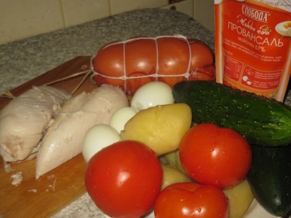 Для приготування салату » Російська красуня » нам потрібні такі продукти: