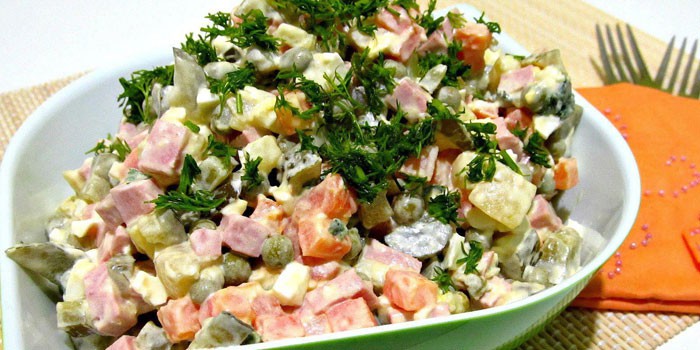 Салат Столичний класичний рецепт з ковбасою