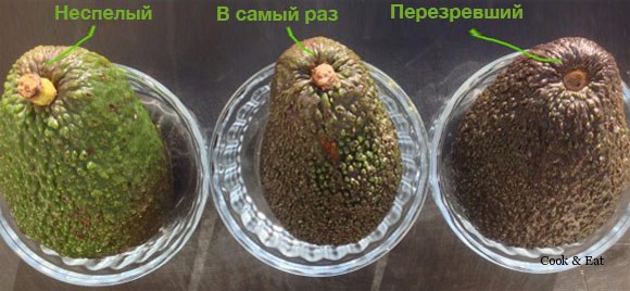 Недозрілий плід не годиться в їжу, але якщо потримати його кілька днів на вікні, то він дійде до потрібної кондиції. Перестиглий плід може перетворити салат в кашу, і страва вийде неаппетитным. Авокадо досить маслянистий, тому не варто робити заправку занадто жирної, а запах не повинен бути яскраво виражений, інакше загубиться ніжний аромат плоду. Господині потрібно пам’ятати, що очищений авокадо швидко темніє і салати можуть виглядати непривабливо, тому його краще відразу збризнути соком лимона.