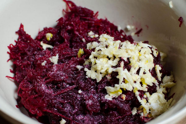 Салат з буряка з часником рецепт, який пропонуємо нижче, включає масу варіацій доповнень з різних продуктів. Якщо його з’єднати з часником і майонезом вийде надзвичайно соковите і смачне блюдо. Його яскравий колір привертає увагу, і по праву він може займати центральне місце на нашому столі. Він має ідеальне поєднання з гарнірами і м’ясними стравами. Для салату можна використовувати як варений буряк, так і сиру.