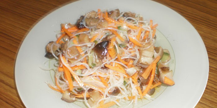 Якщо об’єднати «скляну» локшину з грибами і овочами, то смак приготовленої їжі чудесним чином перетворюється в кращу сторону. Таке блюдо зможе здивувати раптово відвідали ваш будинок гостей, а якщо все правильно зробити, то виглядати він буде не гірше, ніж на фото кулінарних журналів. Салат з фунчозы з грибами готується швидко, просто.