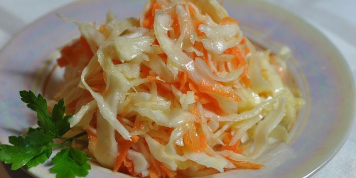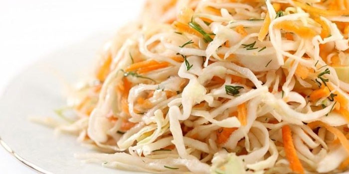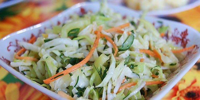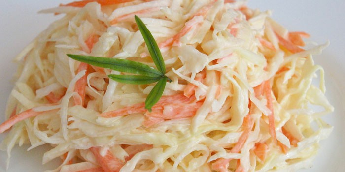 Традиційне доповнення до других страв, з приготуванням якого впораються навіть діти. З особливих кулінарних навичок потрібно лише вміння шаткувати овочі, але якщо використовувати овочерізку, то процес готування вийде прискорити і зробити простим. Корисний салат їх свіжої капусти з морквою можна заправити майонезом, для дієтичного варіанту підійде рослинне масло, а для додання гостроти закуски слід брати оцет. Вибір відповідного варіанта заправки буде залежати від інших поданих страв або режиму харчування.