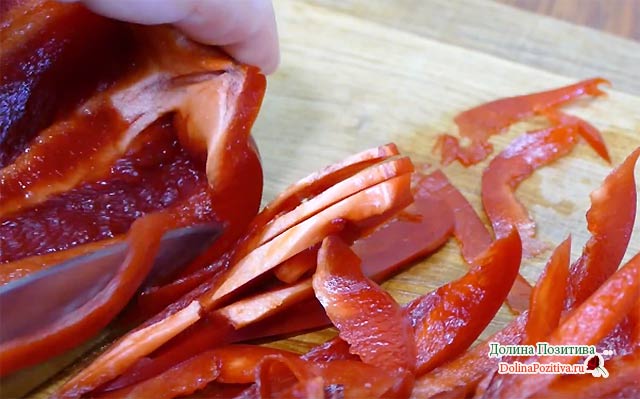 Цибулю і перець тонко наріжте. Під рукою є комбайн з набором насадок для овочів? Скористайтеся ним.