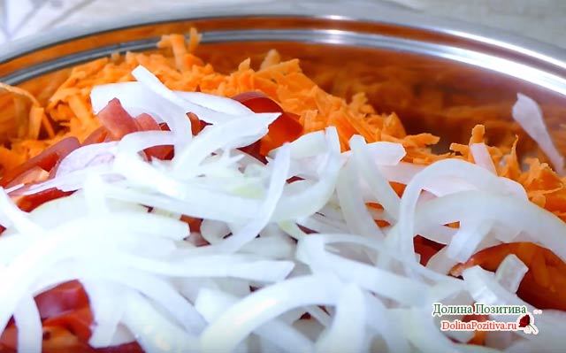 - по 200 гр. салатного перцю, цибулі, моркви;