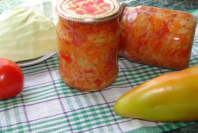 Рецепт приготування заготовки на зиму з капустою, перцем, помідорами