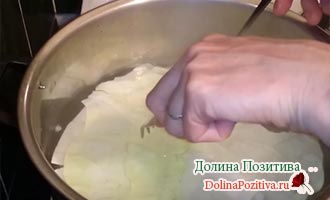 Подварите листи в киплячій солоній воді 1 хвилину. Витягніть на тарілку.