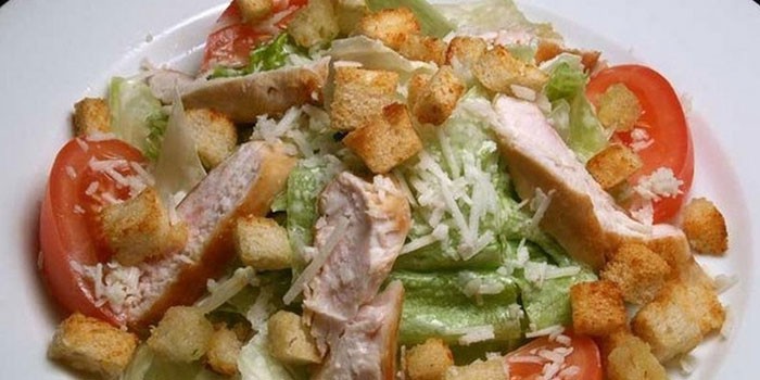Ще один варіант закуски, яка по праву займе гідне місце на святковому столі. Листковий салат з копченою грудкою і сухариками завжди викликає захоплення у людей, які його пробують. Він виходить дуже смачним і ситним, чудово виглядає. Для приготування можете брати сухарики з будь-яким смаком. Найголовніше, щоб вони були не житніми, а пшеничними, тому що останні значно м’якше.