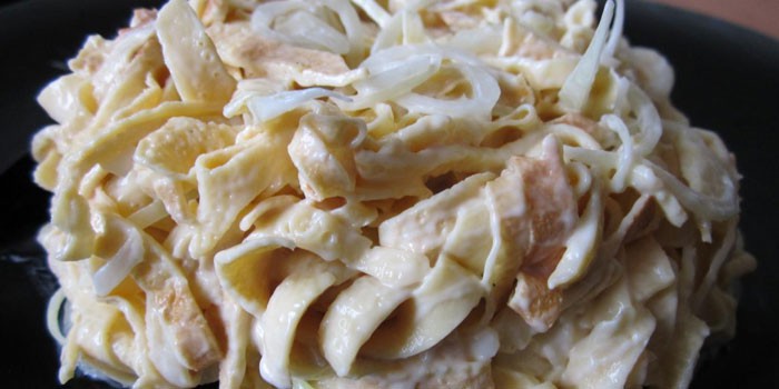- майонез – 200 мл (1 ст. л. на млинці, а решта на заправку).