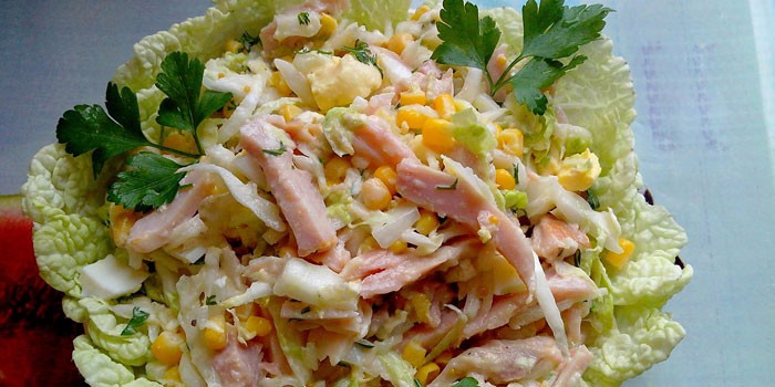 Дуже смачний і швидкий часу готування виходить салат з копченою куркою і кукурудзою. Ці 2 компоненти прекрасно поєднуються між собою. Соковита солодкувата кукурудза контрастує з сухуватою куркою. Поєднання надає закуски чудовий смак. Можна зробити простий салат з копченої курки, заправивши його майонезом, але краще додати страві екзотичні нотки – зробити самостійно заправку з оливкової олії і лимона.