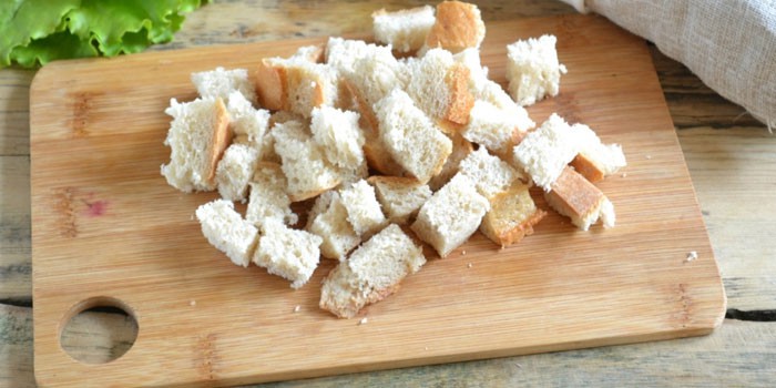 Надзвичайно ситним виходить салат з копченою куркою і сухариками, тому що входить туди хліб швидко втамовує голод. Таке блюдо особливо любимо чоловіками, тому що вони віддають перевагу «важкі» страви. Тут вага м’яса і сухарів врівноважують овочі, а вершковий смак надає м’який сир начебто моцарели або фети. Якщо такого немає, то він легко замінюється на бринзу – в цьому випадку потрібно акуратно підходити до соління.