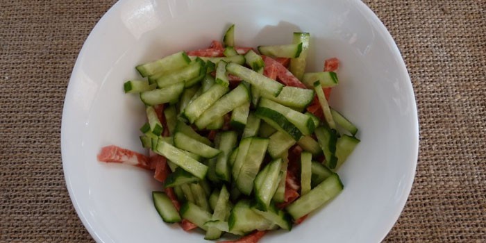 Салат з копченою ковбасою і свіжим огірком