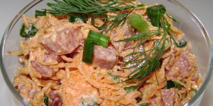 Салат з корейською морквою і копченою ковбасою