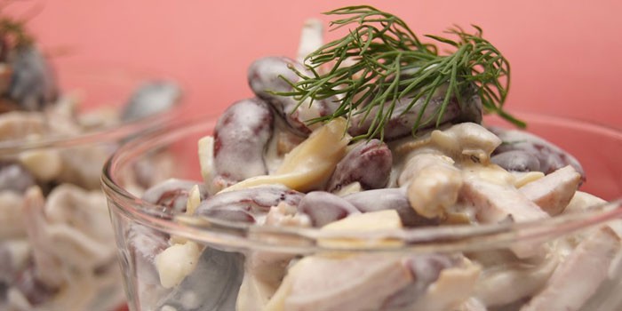 Поживним, дуже смачною стравою є салат з квасолі і ковбаси копченої. Така закуска особливо до душі представникам сильної статі, які цінують в їжі її ситність. Салатик містить ідеально поєднуються між собою компоненти – томати, квасолю, м’ясний продукт, сир, часник. Таким частуванням не соромно зустрічати гостей, а не тільки урізноманітнити буденні обіди. Як готувати пікантне, ніжне блюдо?