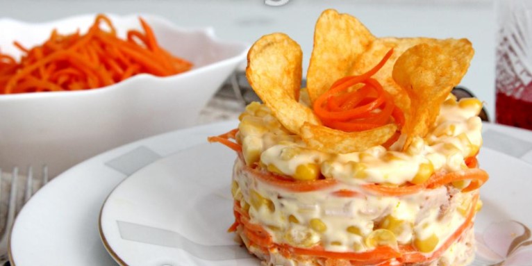 Курячі сердечка досить рідко використовують у салатах. Чомусь цей субпродукт не викликає інтересу у більшості людей. Але саме вони роблять страву досконалим і неповторним, в ньому ідеально абсолютно все. Приємно хрусткі чіпси лише підкреслюють цю дивовижну ідилію.