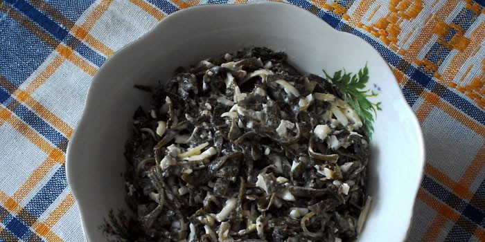 - Експрес-салат на основі ламінарії виходить, якщо заправити її гострим соусом і розтерти з нашаткованою цибулею.