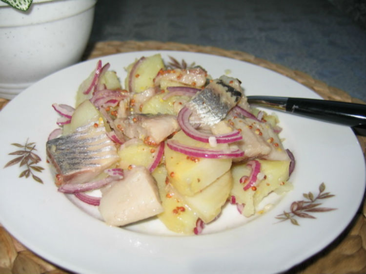 Головний компонент цієї страви, як не дивно, не оселедець, а картопля. До її вибору слід підійти дуже ретельно. Тільки якщо в картоплі-рибному салаті буде використаний якісний, дуже смачний картоплю, то блюдо і буде володіти чудовим смаком. Причому назвати його закускою досить складно, це може бути повноцінний сніданок або вечерю, причому неймовірно смачний.