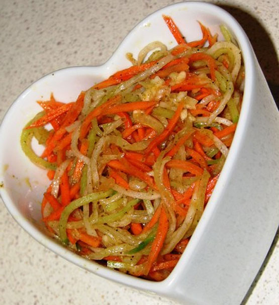 Салат гострий з редьки з заправкою з оцту і цибулі