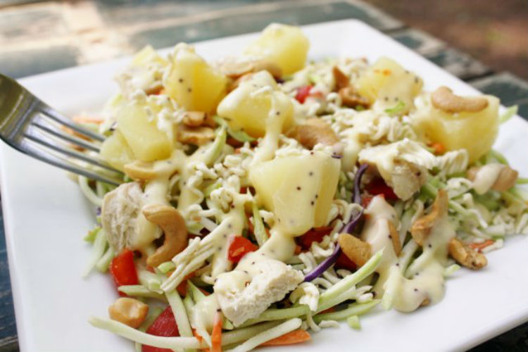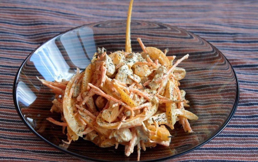 Соковите куряче м’ясо, безліч сухофруктів, різні види горіхів, пряний картопля, селера, кориця і навіть чорна смородина. Важко назвати це салатом? Важко це не спробувати!
