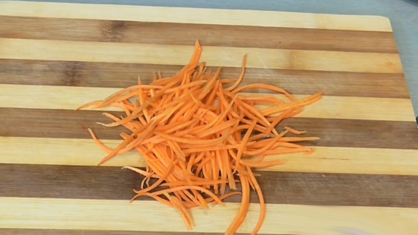 В ході приготування страви свіжу моркву слід помити, почистити і потім нарізати або натерти на дрібної, або на крупній тертці, в залежності від ваших смаків.