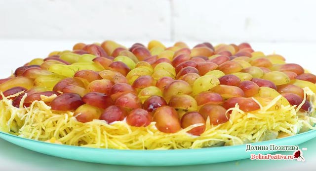 Це дуже гарний салат, який шкода їсти. Крім оформлення, він дуже смачний. Незвичайне поєднання інгредієнтів нікого не залишить байдужим.