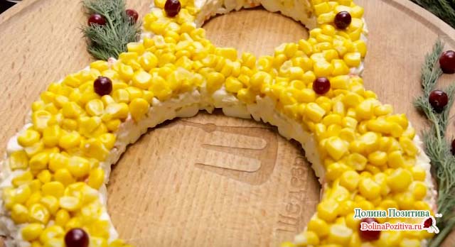 Це легкий і швидкий рецепт святкового салату. Всього 3 інгредієнта — зате як смачно! Подайте його на святковий стіл у формі вісімки. Як? Читайте далі.