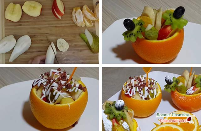 • Дитяче частування на святковий стіл: фруктовий салат в апельсинових кошичках
