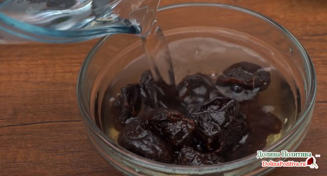Чорнослив промийте. Залийте окропом, залиште на 10 хвилин. Сухофрукти набубнявіли? Злийте воду і наріжте плоди на дрібні шматочки.