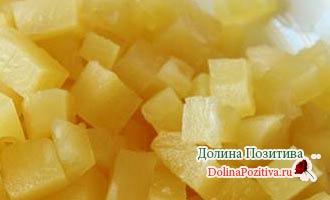 • Болгарський перець очистити від плодоніжки і насіння. Наріжте кубиками.