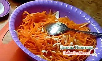 Подрібнюємо часник. Вводимо в загальну масу моркву.