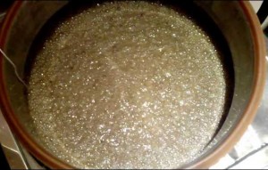 Потім суміш остуджується невеликою кількістю холодної води до температури 17°С і розріджується. Підготовлена закваска повинна простояти 3 дні. Потім слід додати дріжджі і почекати етап бродіння. Перегонку можна починати після випадання на бразі осаду і появи пухирців газу зверху неї. Самогон повинен бути з приємним запахом і м’яким смаком.