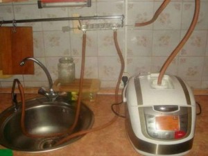 Щоб зібрати самогонний апарат крім мультиварки знадобиться охолоджувач (конденсатор), 3 м