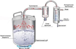 При перегонці, регулюючи потік холодної води, домагаються потрібного охолодження внутрішній трубці. Флегма конденсується на стінках внутрішньої труби і стікає назад в перегінний куб, очищений спиртовий пар йде далі в холодильник дистилятора. Сивушні масла залишаються в перегінному кубі.