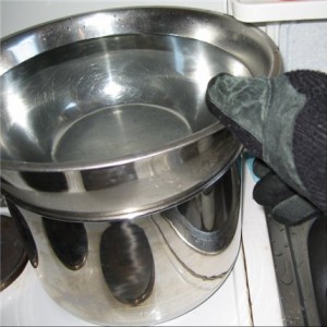 Зробити його можна з каструлі, тазу по діаметру однаковим з каструлею (баком), металевої чашки і підставки під неї.