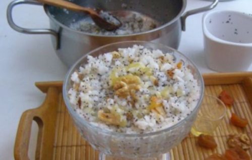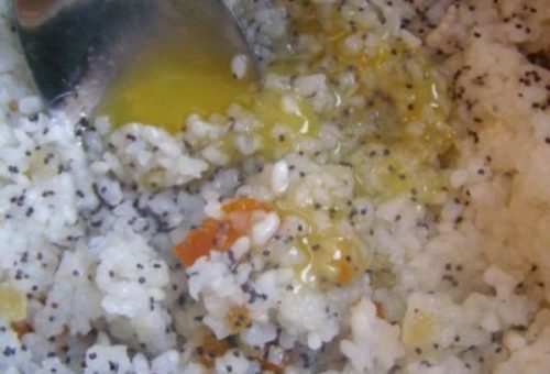 - Змішуємо з рисом, сюди ж додаємо мак і мед по своєму смаку.