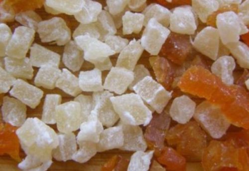 - Нарізаємо курагу і цукати маленькими кубиками.