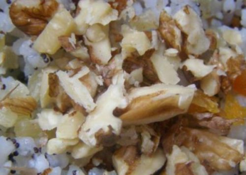 - Потім доповнюємо блюдо горіхами крупно подрібненими, знову перемішуємо і подаємо красиву і апетитну кутю до столу.