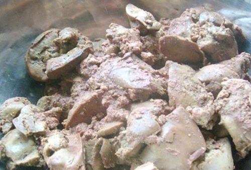 - Обполіскуємо печінка, шаткуємо шматочками, відправляємо гаситися в ємність з водою на півгодини.