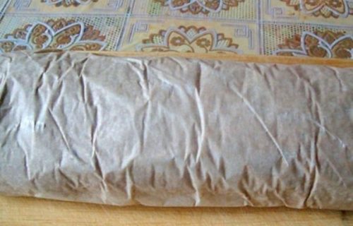 - Звертаємо заготівлю рулетом, загорнути в пергамент, відправляємо в холодильник на 3 години.