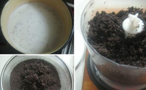 - У каструлю вливаємо молоко, кип’ятимо, відправляємо сюди ж мак, варимо, зробивши слабкий вогонь 7 хвилин, а потім просушуємо.