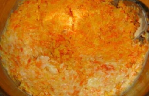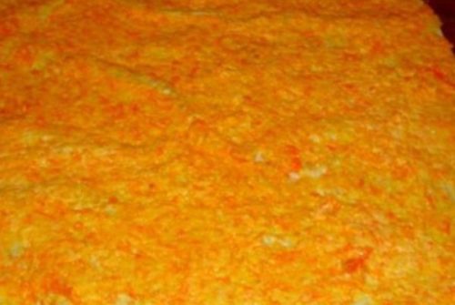 - Готуємо першу начинку. Очищаємо моркву трьом на тертці з дрібними отворами.
