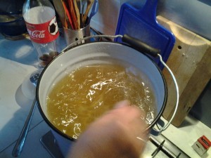 У 9 л теплої води розводять 25 гр дріжджів, 0,5 л кефіру, 0,5 кг розвареного гороху, 3 кг цукерок (можна робити з будь-якими, частіше використовують карамель). Розмішують до повного розчинення цукерок. Тривалість бродіння – близько 10 днів.
