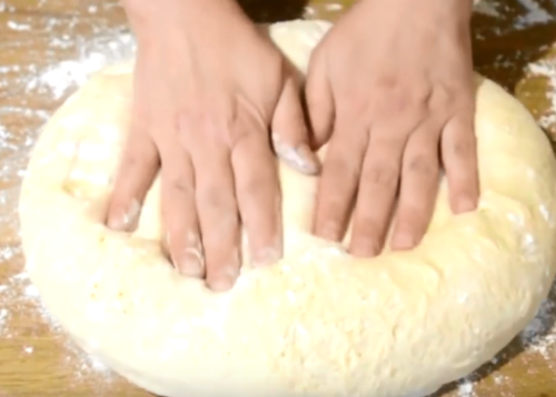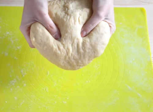 - Перемішуємо тісто приблизно 10 хвилин. Формуємо кулю, викладаємо його в глибоку тарілку, накриваємо кухонним рушником або харчовою плівкою, ставимо в тепле місце на 1-1,5 години.
