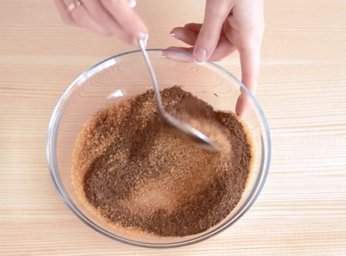- Для начинки змішуємо цукор і корицю. Добре перемішуємо.