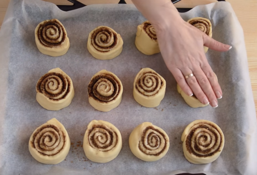 - Форму застеляємо спеціальним папером, викладаємо синнабоны на невеликій відстані один від одного.